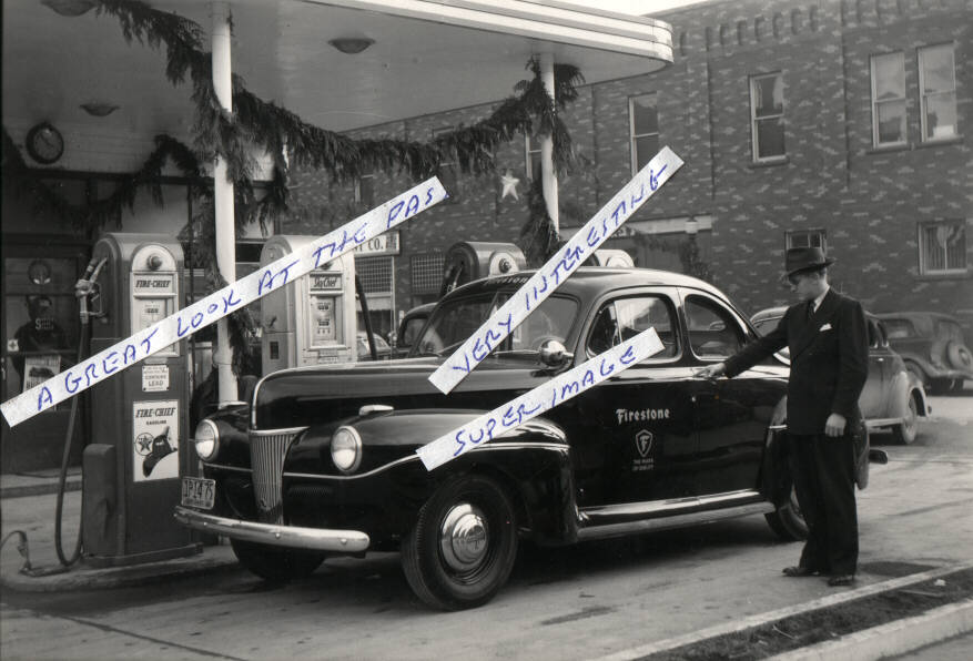 (8 X 10 ) A FANTASTIC PHOTO OF A FIRESTONE AUTO AT A TEXACO GAS STATION