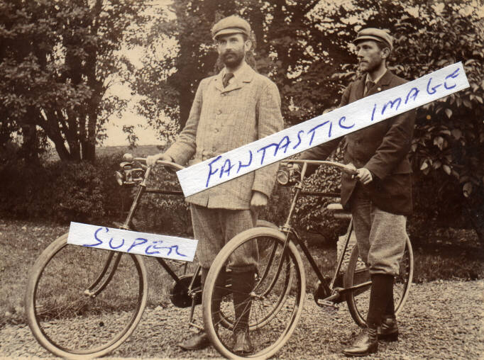 (8 X 10 ) A SUPER PHOTO OF TWO MEN WITH BICYCLES