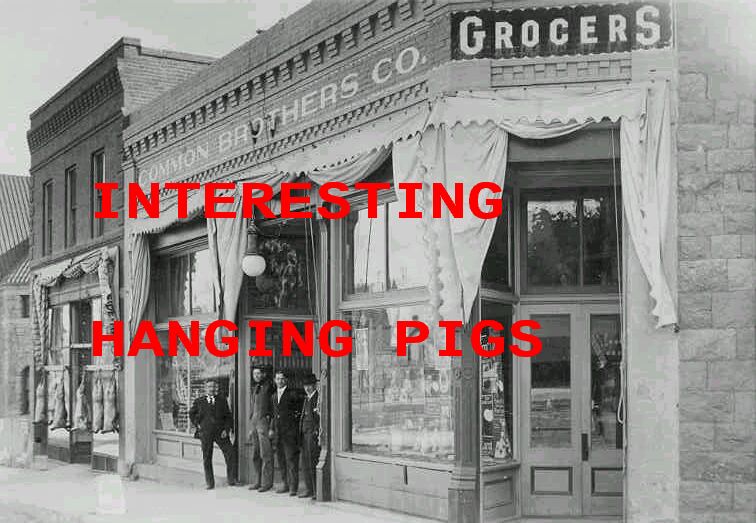 (8 X 10 ) A SUPER PHOTO OF STORE EXTERIORS WITH HANGING PIGS