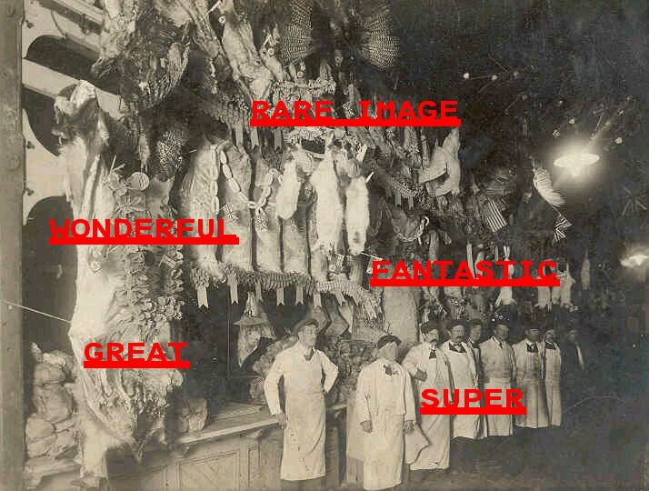 (8 X 10 ) MOST FANTASTIC BUTCHER SHOP INTERIOR WITH HANGING MEATS