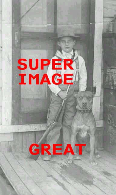 (8 X 10 ) A FANTASTIC PHOTO OF A BOY, RIFLE AND DOG
