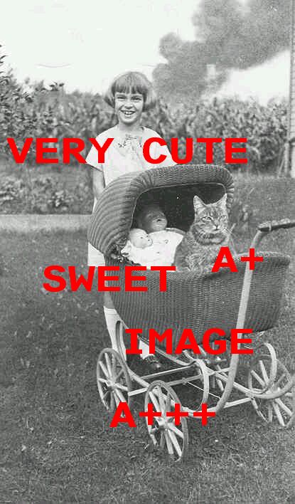 (8 X 10 ) A FANTASTIC PHOTO OF A GIRL WITH DOLLS AND CAT IN BUGGY