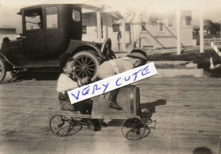 (8 X 10 ) A FANTASTIC PHOTO OF KIDS AND A PEDAL CAR..A REALLY SUPER IMAGE SHOWING BOTH CARS