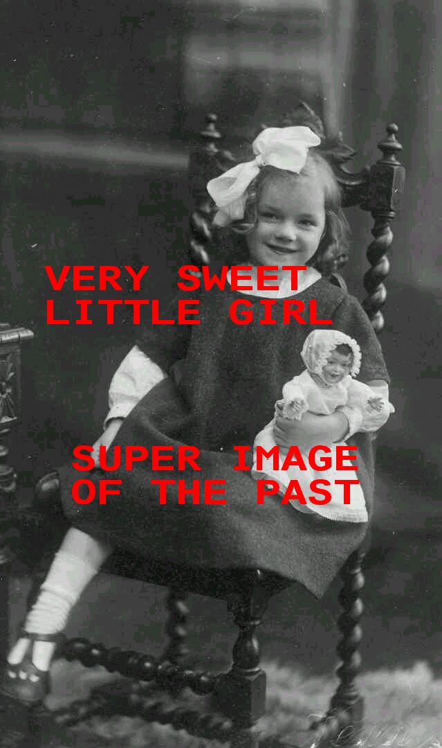 (8 X 10 ) A VERY SWEET LITTLE GIRL WITH HER DOLL SITTING ON A GREAT CHAIR