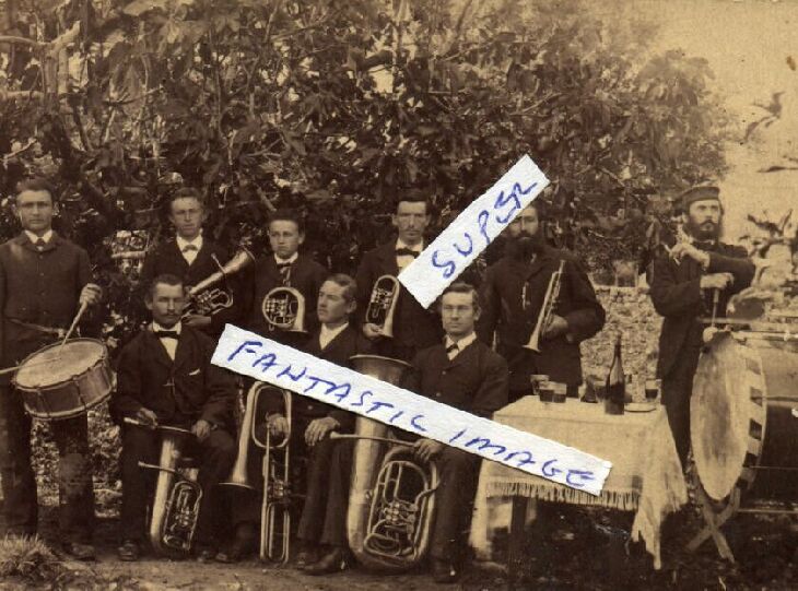 (8 X 10 ) A FANTASTIC BAND PHOTO WITH BEER AND CIGARS