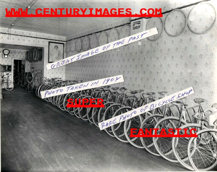 (8 X 10 ) A FANTASTIC PHOTO OF A BICYCLE SHOP INTERIOR FROM 1904