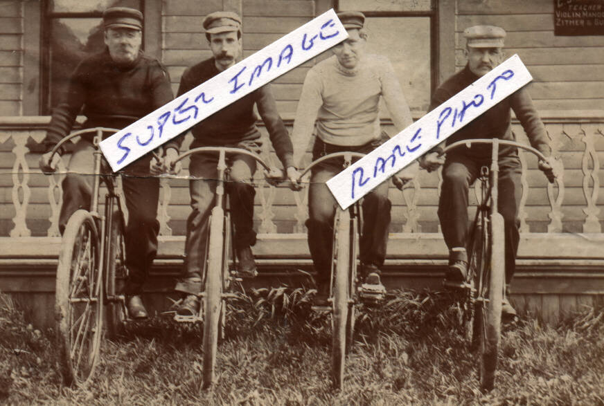 (8 X 10 ) A FANTASTIC PHOTO OF FOUR MEN ON BICYCLES