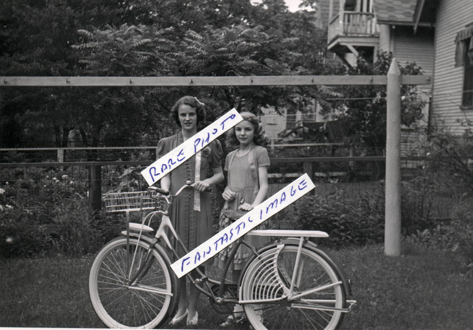 (8 X 10 ) A FANTASTIC PHOTO OF GIRLS WITH A NEW BICYCLE