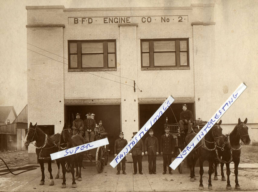 (8 X 10 ) A SUPER PHOTO OF THE B.F.D. FIRE DEPARTMENT. WE DON'T KNOW WHERE THIS IS LOCATED