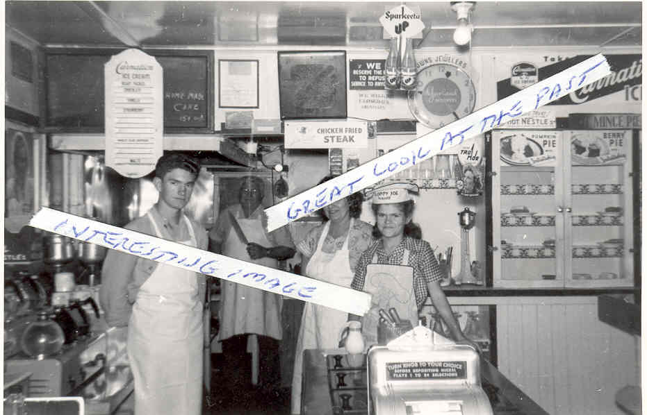 (8 X 10 ) A SUPER PHOTO OF A DRUG STORE OR DINER WITH SOME KIND OF COIN MACHINE AT FRONT