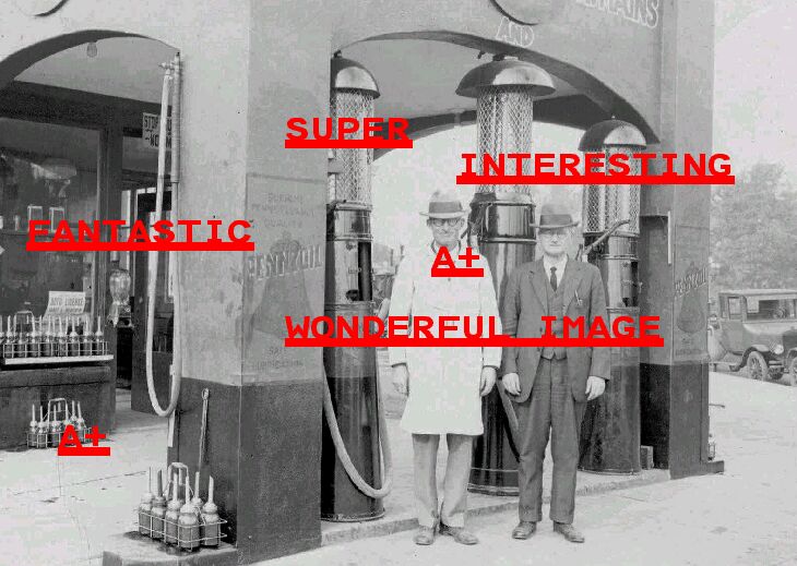(8 X 10 ) A MOST FANTASTIC PHOTO OF A GAS STATION WITH NEAT GUM OR PEANUT MACHINE AT DOOR ENTRANCE