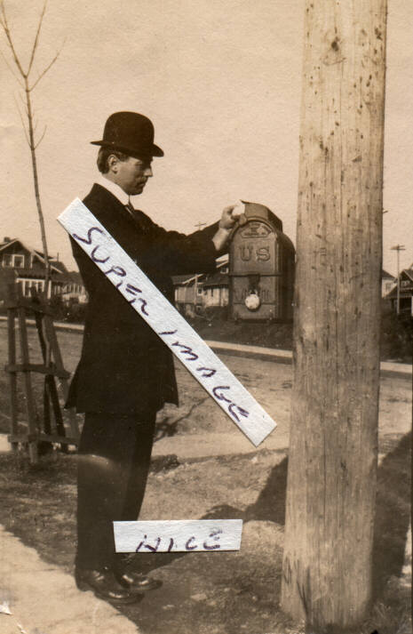 (8 X 10 ) A WONDERFUL PHOTO OF A MAN PUTTING A LETTER IN A MAIL BOX