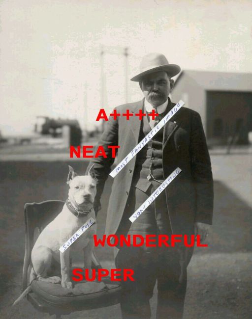 (8 X 10 ) A MOST FANTASTIC PHOTO OF A MAN WITH MASONIC WATCH FOB WITH PITBULL DOG
