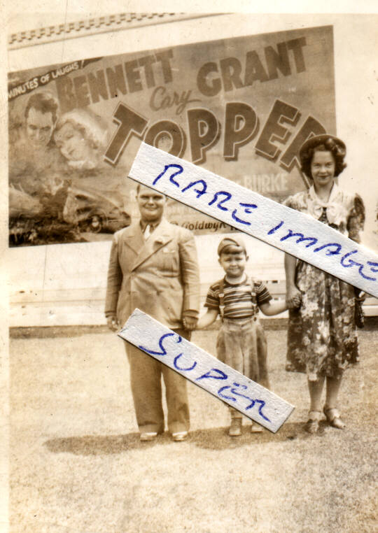 (8 X 10 ) AN INTERESTING PHOTO OF PEOPLE STANDING MY LARGE POSTER OR BILLBOARD..WE DON'T KNOW IF THESE PEOPLE ARE MOVIE STARS
