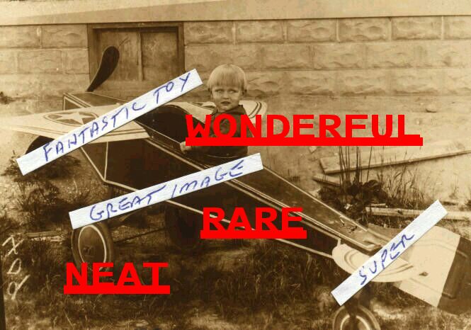 (8 X 10 ) A FANTASTIC PHOTO OF A BOY IN HIS PEDAL AIRPLANE