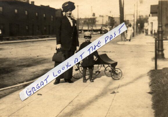 (8 X 10 ) A FANTASTIC PHOTO OF A MOTHER AND SON WITH PEDAL CAR