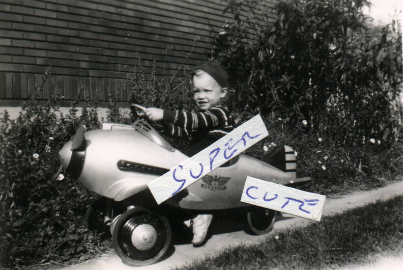(8 X 10 ) A FANTASTIC PHOTO OF BOY IN HIS PEDAL AIRPLANE
