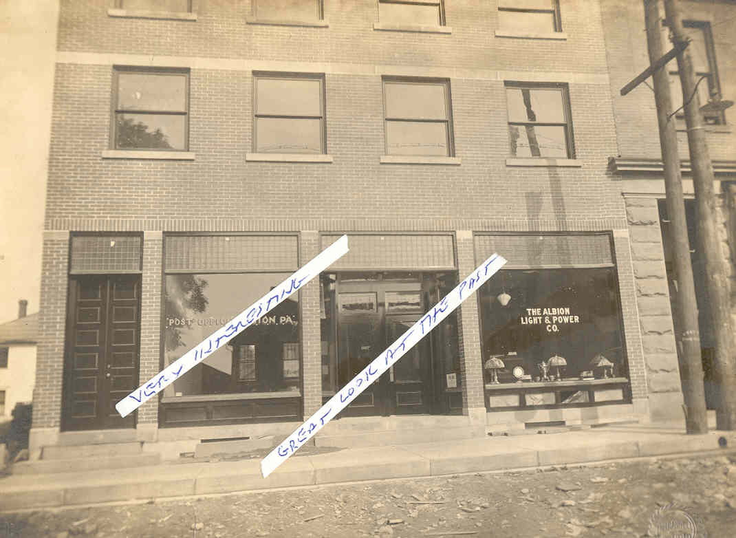 (8 X 10 ) A FANTASTIC PHOTO OF THE ALBION, PA. POWER COMPANY AND POST OFFICE