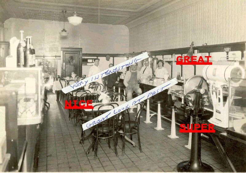 (8 X 10 ) A FANTASTIC PHOTO OF A DINER WITH GREAT SCALES AND MEAT CUTTING MACHINE