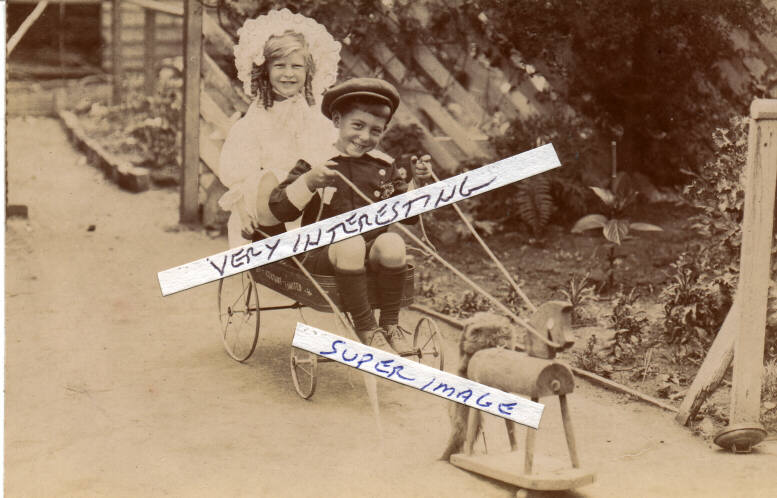 (8 X 10 ) A WONDERFUL PHOTO OF CHILDREN PLAYING WITH TOYS AND BOY WITH SAILOR SUIT