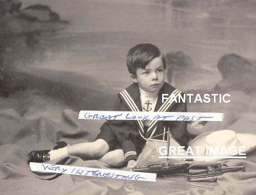 (8 X 10 ) A MOST WONDERFUL PHOTO OF A BOY IN A SAILOR SUIT WITH A TOY BOAT