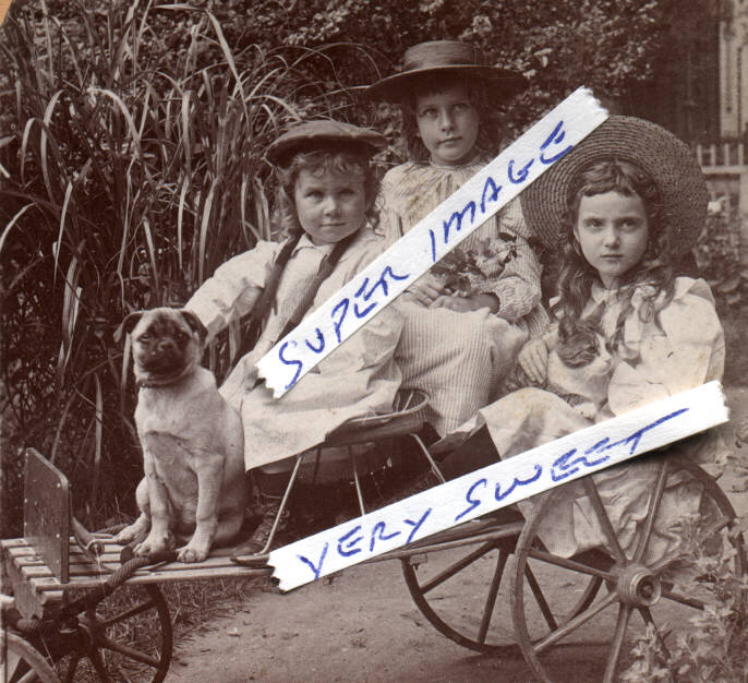 (8 X 10 ) A MOST FANTASIC PHOTO OF CHILDREN WITH A DOG AND CAT AND NEAT CART