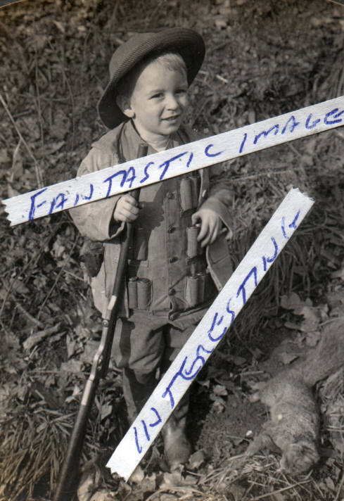 (8 X 10 ) A WONDERFUL PHOTO OF A CUTE LITTLE BOY WITH RIFLE