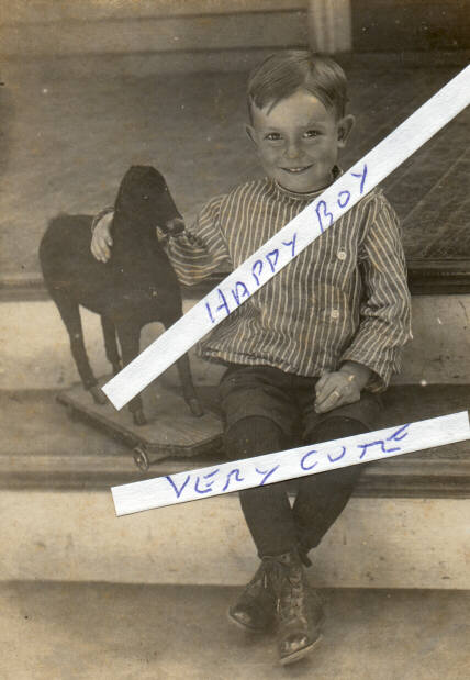 (8 X 10 ) A GREAT PHOTO OF A BOY WITH HIS TOY HORSE