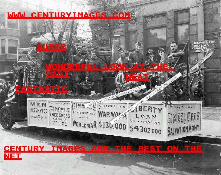 (8 X 10 ) A GREAT PHOTO OF A TRUCK PULLING A FLOAT WITH SALVATION ARMY AND MACYS STORE